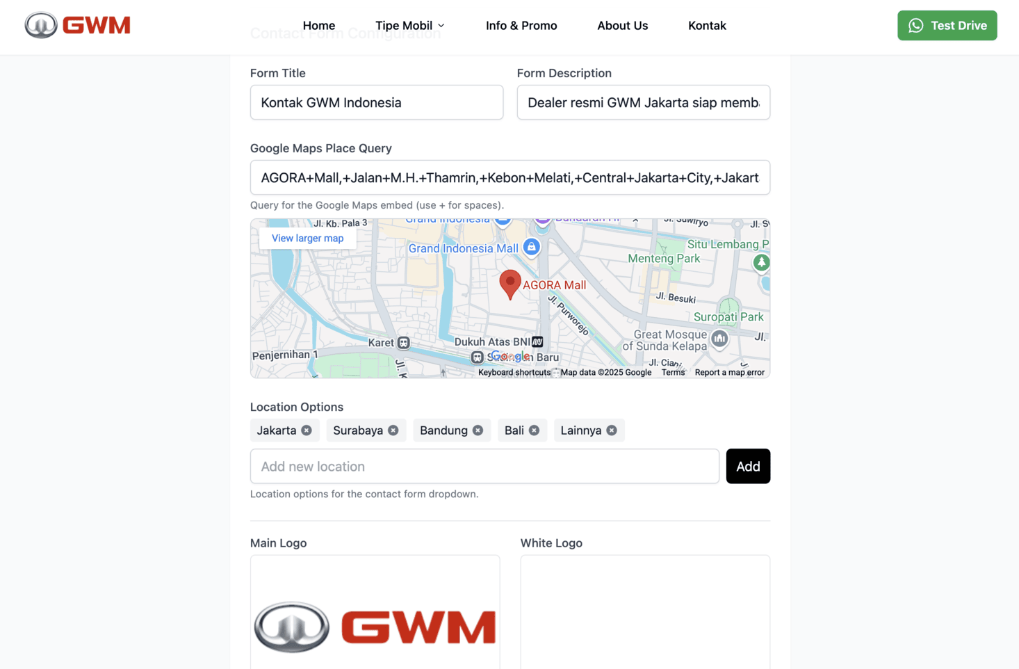 - Update WhatsApp link, company phone, address, and social media links (Facebook, Instagram, X, YouTube).